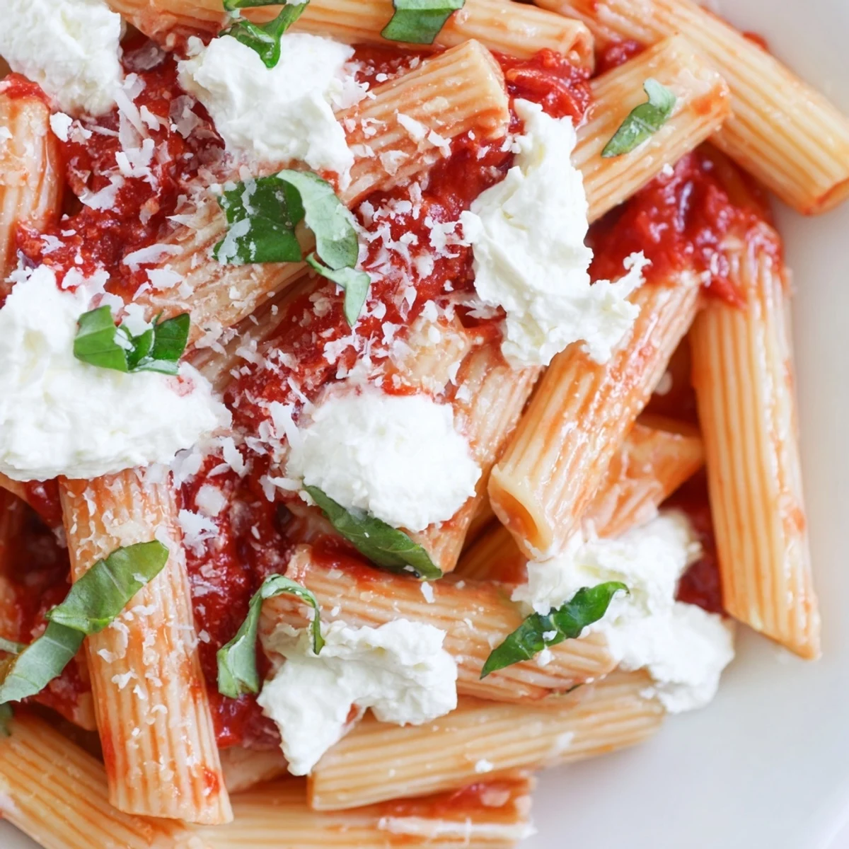 This vibrant Italian pasta combines tender penne with a rich garlicky tomato sauce, swirled with creamy fresh ricotta and aromatic torn basil. Ready in just 30 minutes, the dish balances tangy tomatoes, aromatic garlic, and velvety cheese for a comforting vegetarian meal that's perfect for weeknight dinners or casual entertaining.